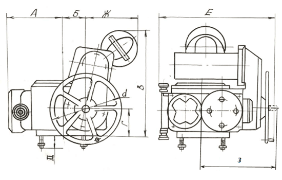 | Электропривод ВГ 03 | Б099.103-03М | 1000-2500 | 20 | 36 | 200 | 5.5 | 210 |